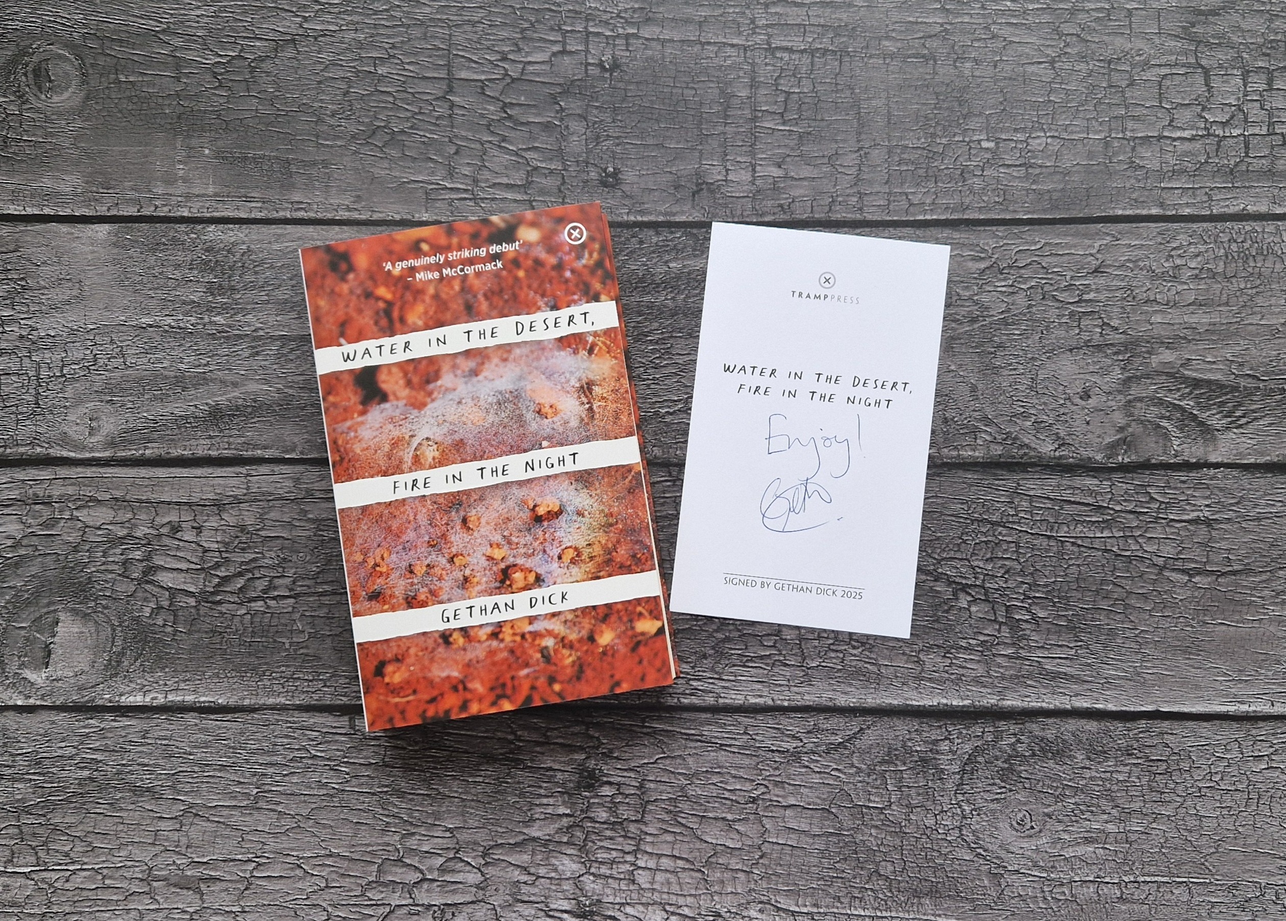 When you order Water in the Desert, Fire in the Night by Gethan Dick, we will include a signed bookplate/tip-in sheet while they last!
